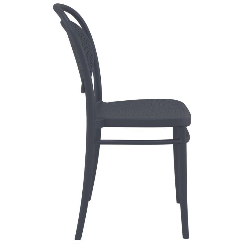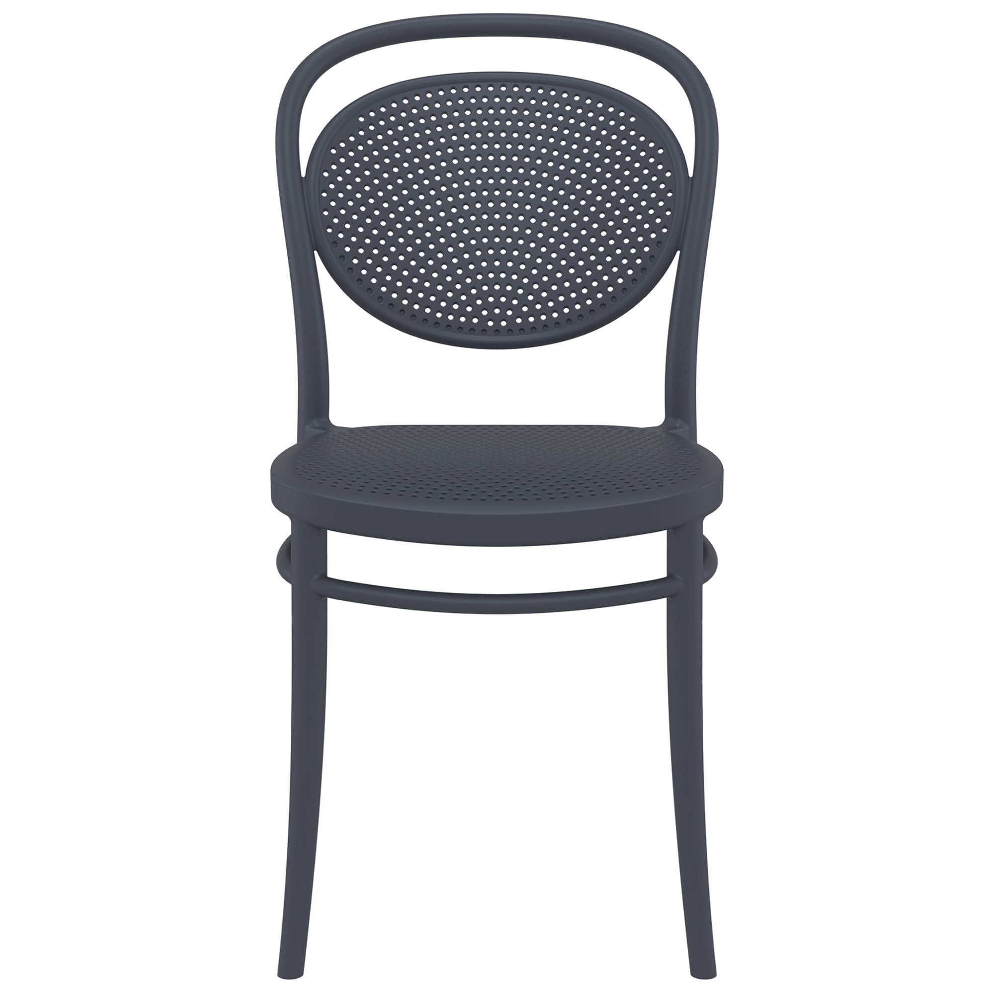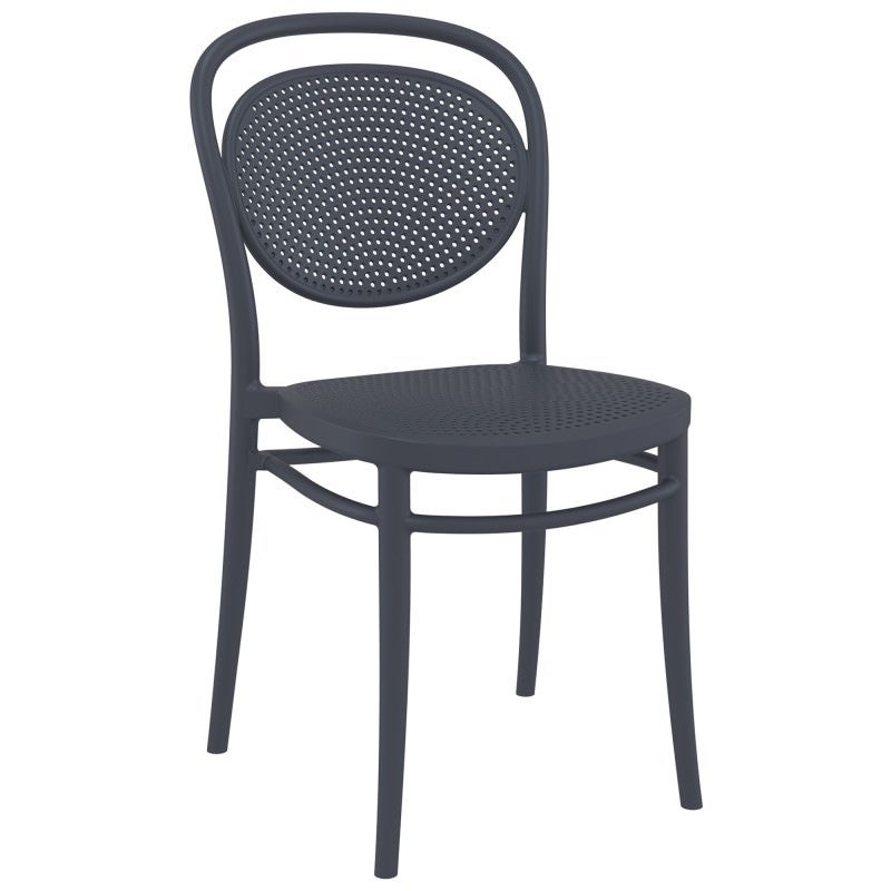 Marcel stacking chair is produced with a single injection of polypropylene reinforced with glass fibre obtained by means of the latest generation of air moulding technology with neutral tones. For indoor and outdoor use.