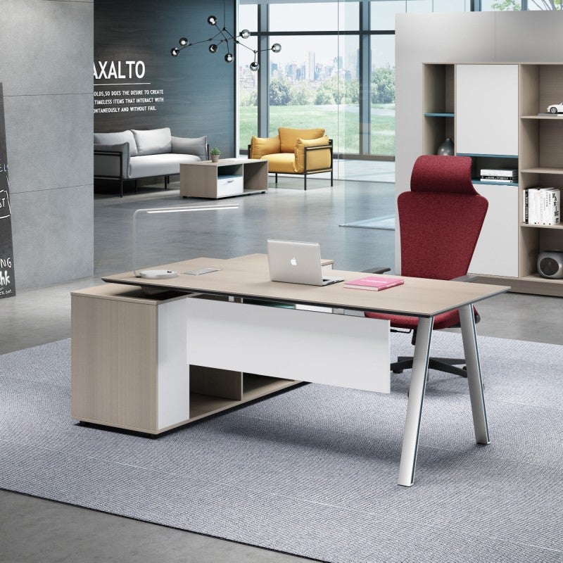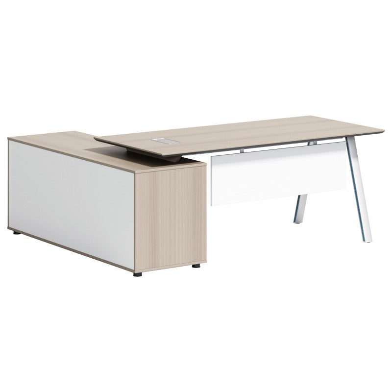 The return credenza can be installed on either side of the desk to suit your workspace layout.