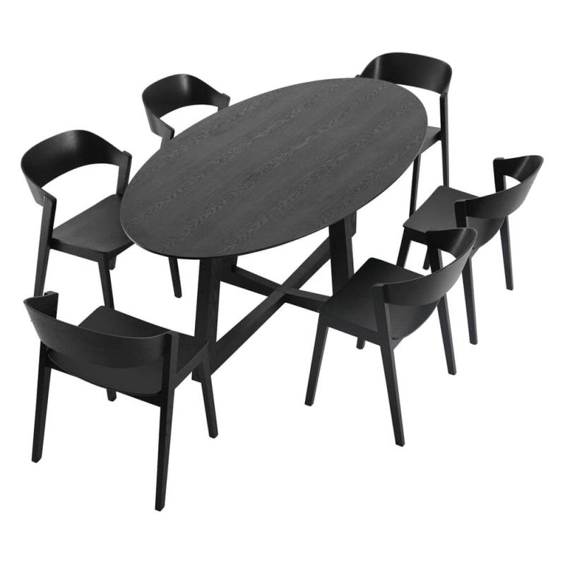 - Table: Timber Veneered MDF, Solid American Ash Timber; Chair: Solid American Ash Timber, Engineered Wood