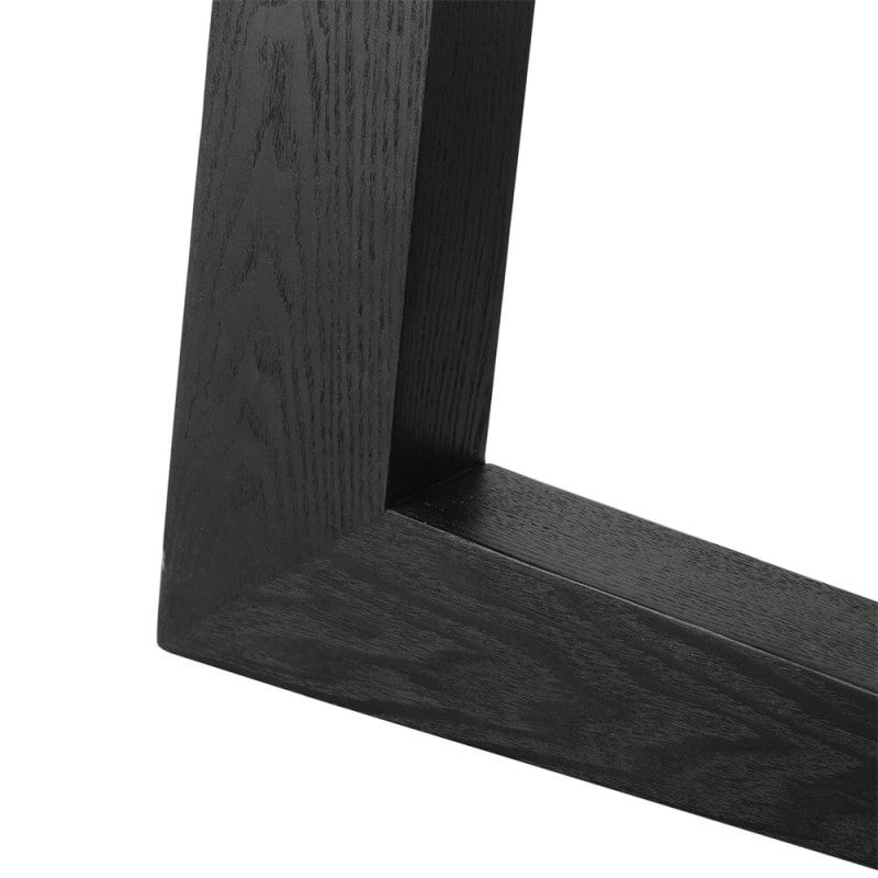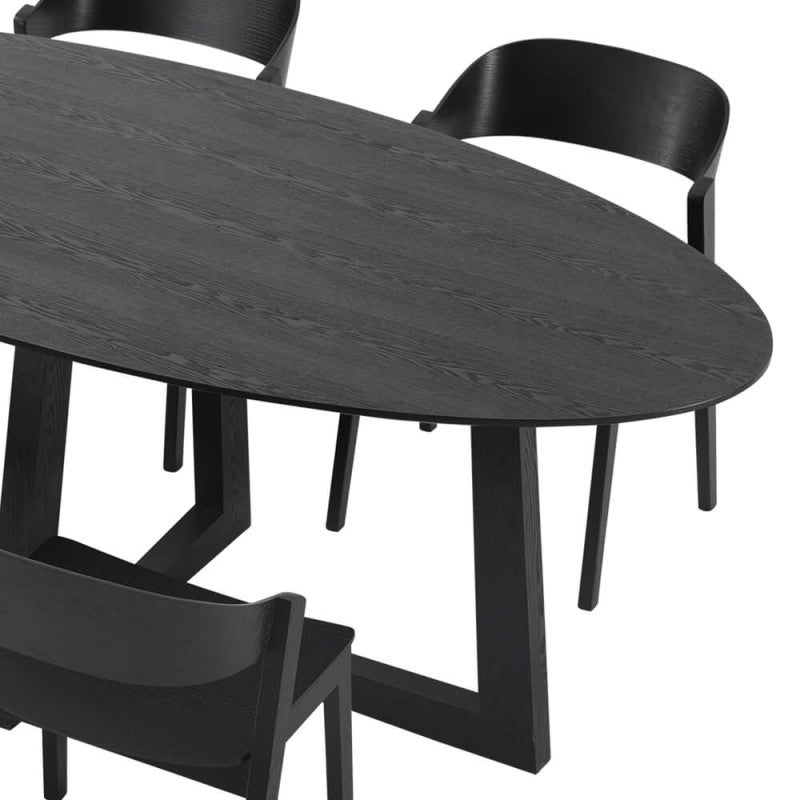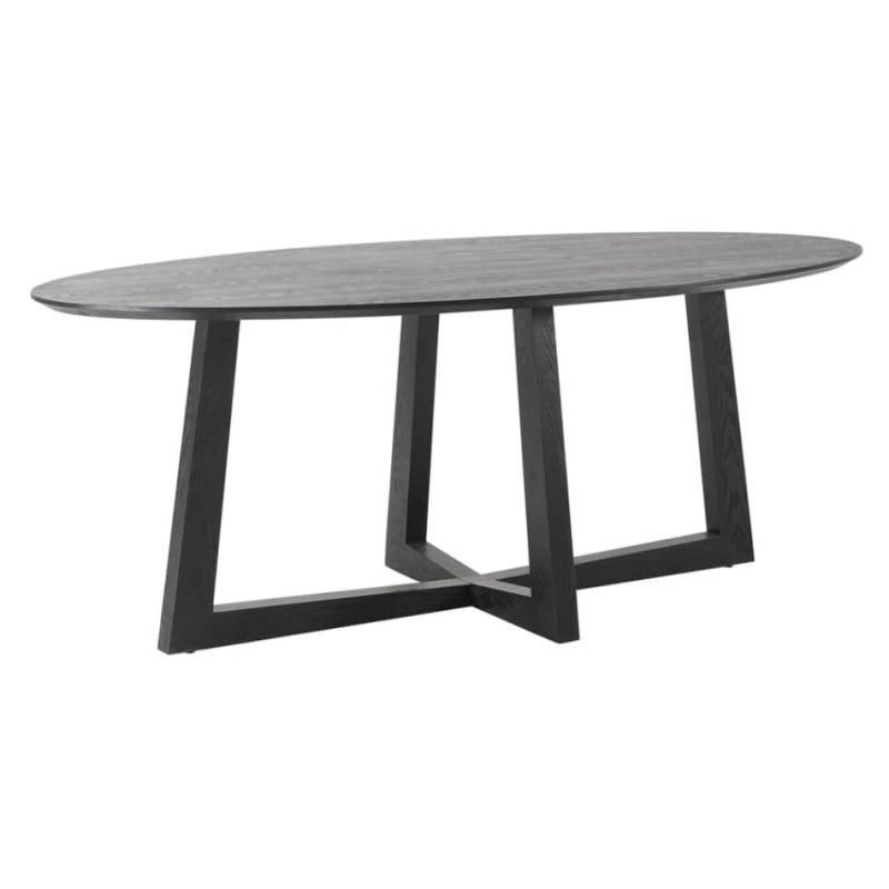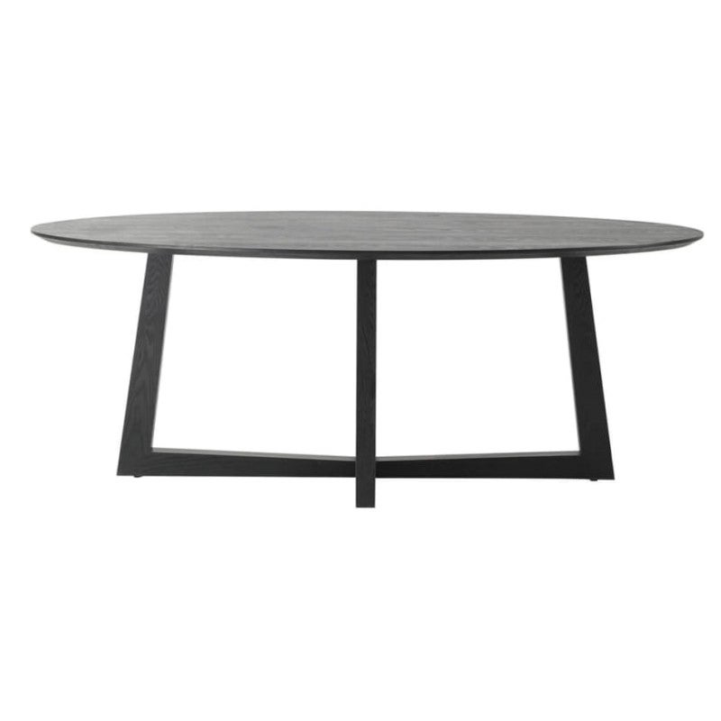 Provides classic minimalism to your dining space for a sleek and refined finish. The veneer of the tabletop and the solid ash wood frame are in a blonde timber hue and feature a gorgeous natural grain, which makes it easy to introduce to any setting. Constructed from an MDF top, and with a solid wood frame and legs, this Sloan oval timber dining table adds natural touch to your classic dining room interior and perfectly suited for your everyday dining use, large dinner parties or even as a stylish conference table. The frame of this dining table has a bold angular construction which adds dimension whilst also providing enough space for dining chairs to tuck under.