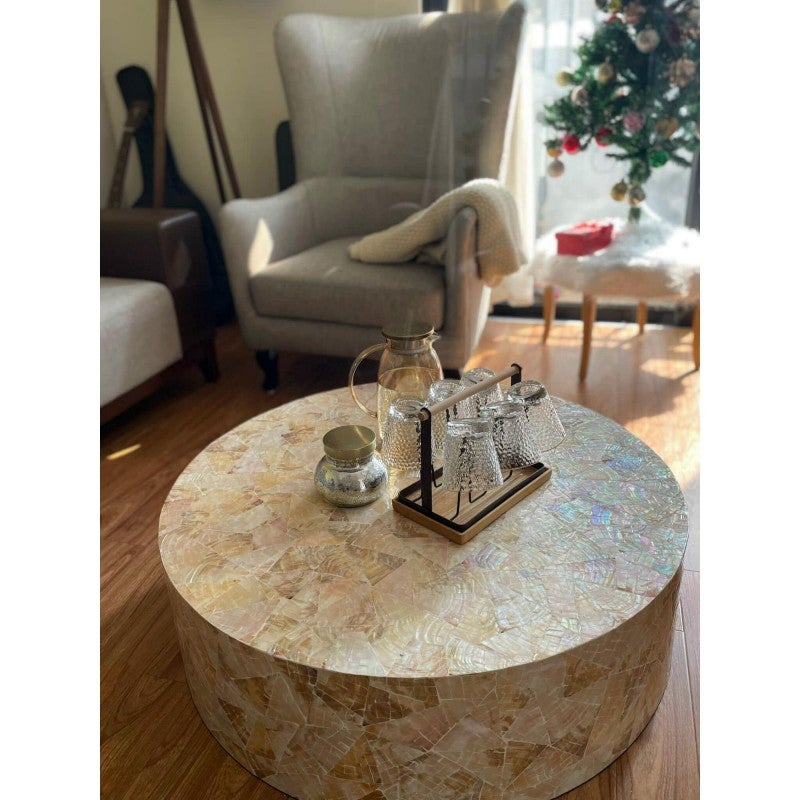 Disclaimer: Our hand-crafted Mother of Pearl furniture is expertly crafted, imparting each piece with a unique character of its own. Such pieces may bear small markings, smudges, glue spots, and other subtle details - all of which contribute to its one-of-a-kind look. Patterns may differ from those shown in its original photos. Note that these details are not faults and are instead part of the charm of such hand-crafted items. To maintain these pieces, they should not be used outdoors, nor should cleaning chemicals be used. Instead, use a lint-free cloth, and also make sure not to place these pieces near heat or sunlight, as this may cause fading.
