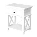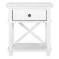 The Sorrento range offers a combination of classic and contemporary style. A sound structural design is completed with cross detailing for a look that is well-suited to the modern home. The bedside table comes with a single drawer and low shelf - ideal for storing bedside essentials.