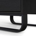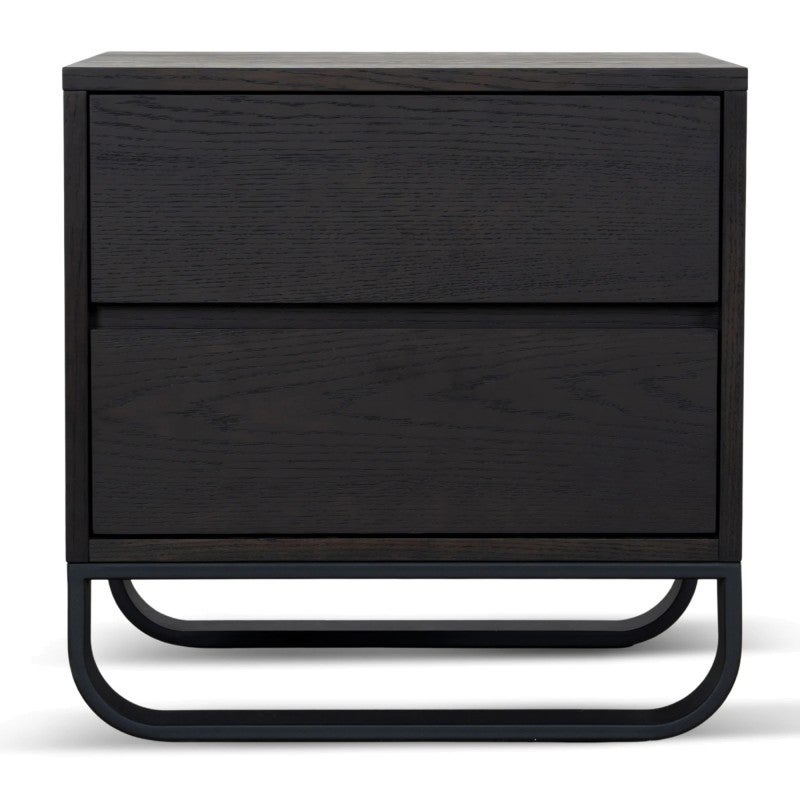 - U-shaped metal legs finished in a black powder-coated colour