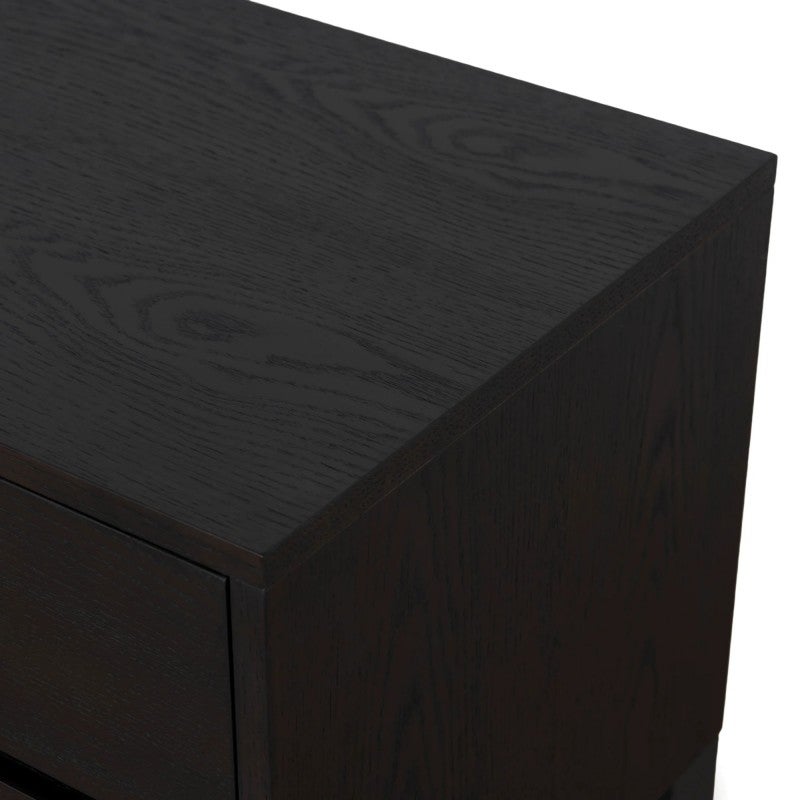 - Durable engineered wood with dark walnut veneer