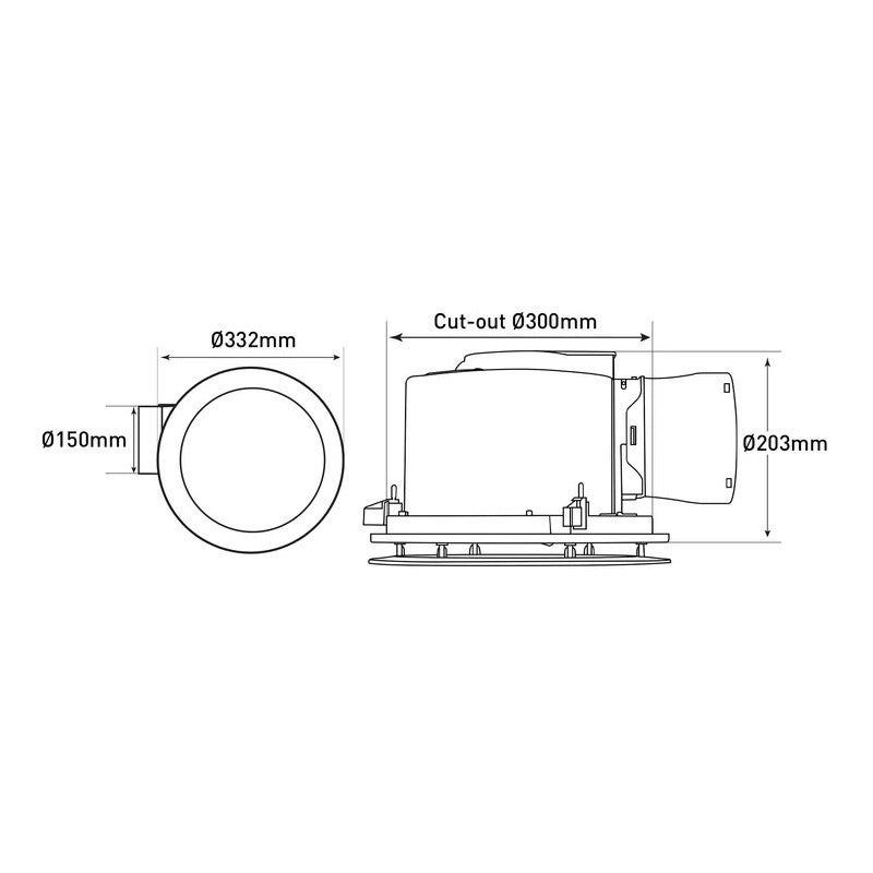 - Fascia: 33.2cm Dia; Cutout: 30cm Dia