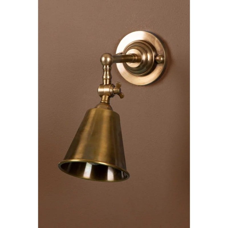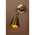 Our Utopia lamp is industrial wall spotlight in antique brass or silver finish. This lamp is mounted with adjustable head which can be used as wall reading light in study or positioned over bed as rustic style book reading light. This could also be used as picture light, book-shelf light or light to highlight menu boards in restaurants and cafes. The wall light is well built with solid brass anti-rust material and on metal rod has one interlocking joint to enable to rotate the lamp up and down position.