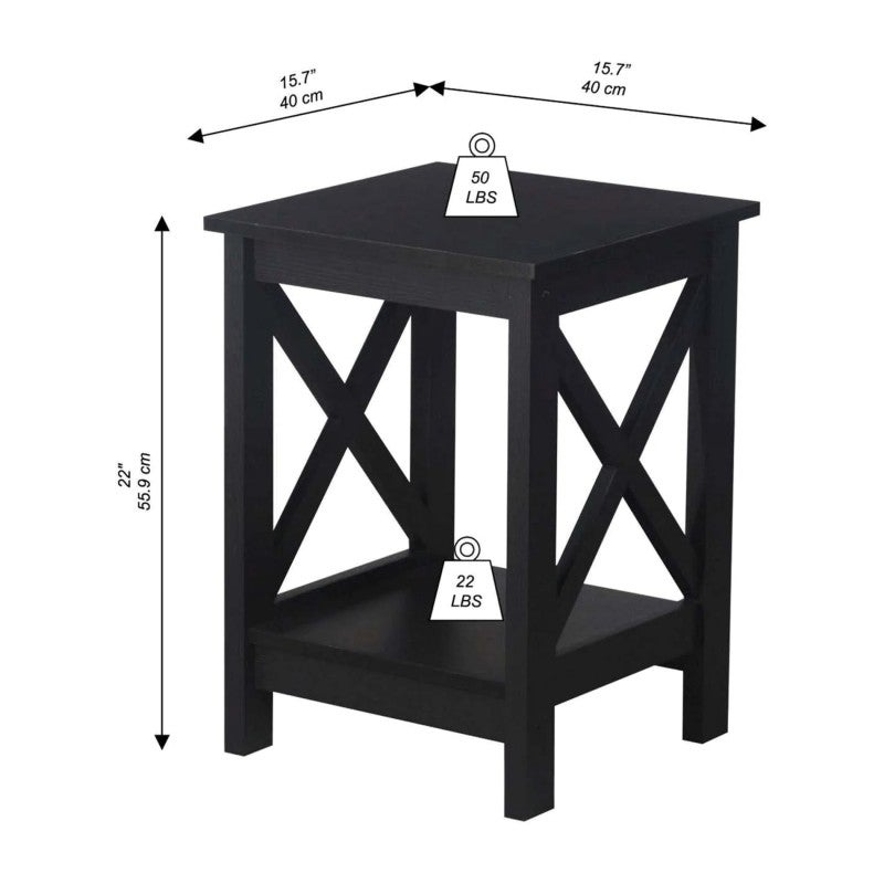- X-cross accents add detail and character to each table
