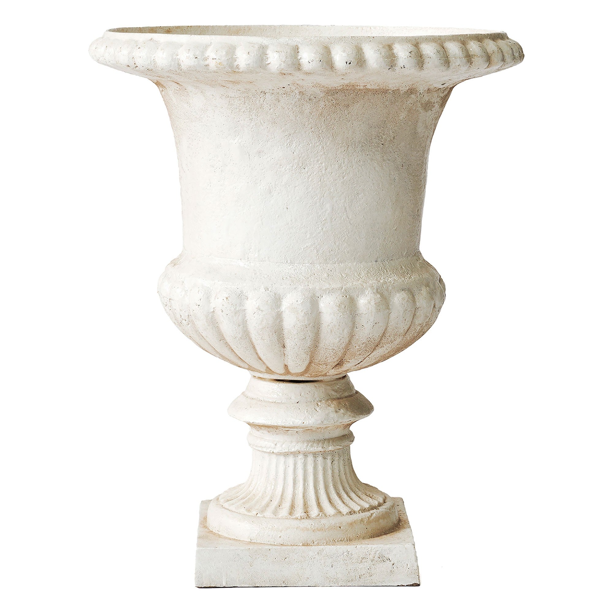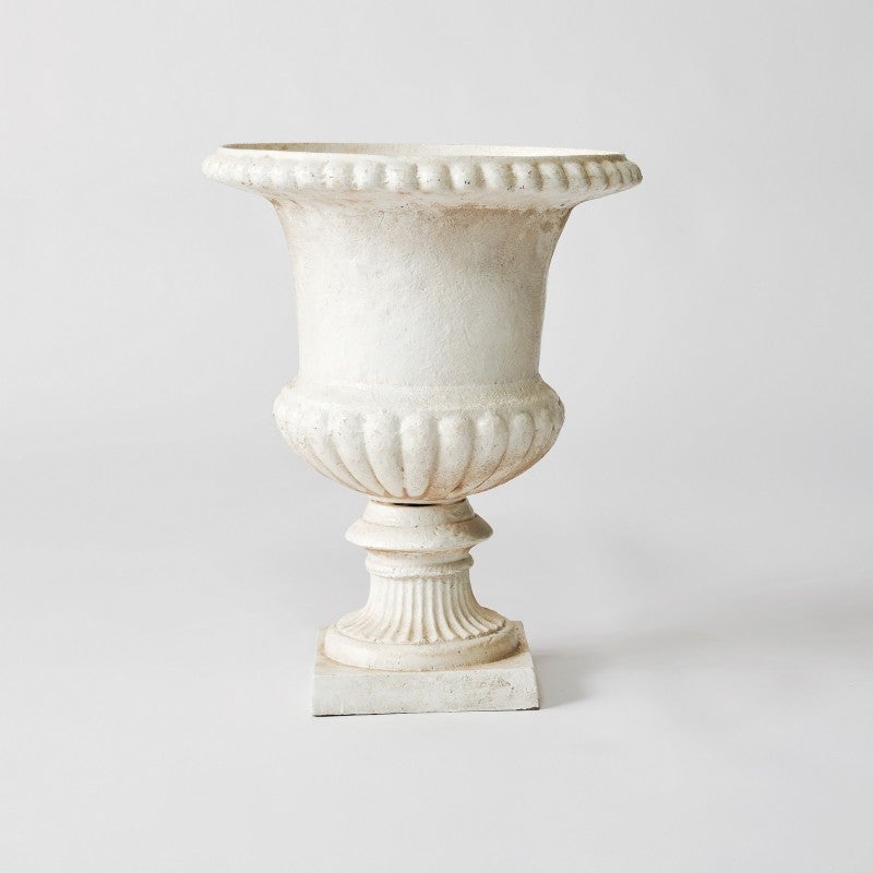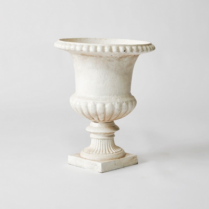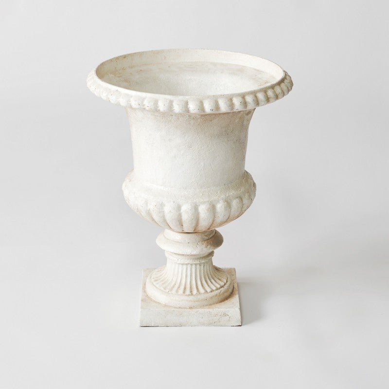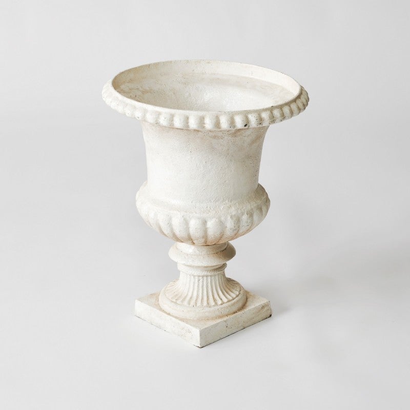 This urn makes an excellent choice for formal gardens, cottage-style landscapes, or verandah decor. Suitable for planting or decorative display, Crafted from solid cast iron, this urn is built for outdoor durability and long-term use. The painted white surface creates a crisp, traditional look, whether used alone or paired with our 48cm cast iron plinth (not inlcuded) to create an elevated garden statement. This urn makes an excellent choice for formal gardens, cottage-style landscapes, or verandah decor.